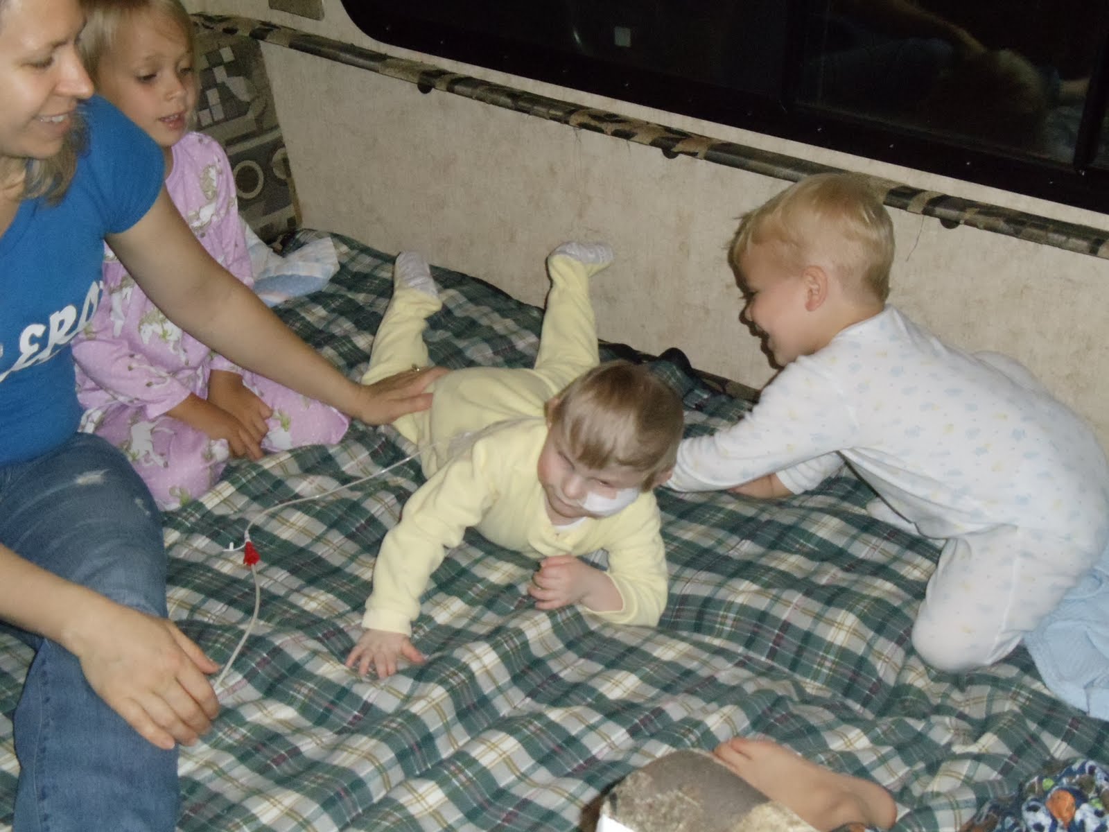 | Regan, Evan and Ethan romping around with Julia just before bed |